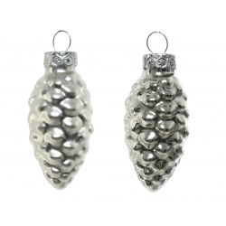 Discover our set of 12 Silver Glass Pine Cones, a perfect touch of elegance for your Christmas decorations. Made from durable glass, these ornaments stand out with their shiny and matte finish, offering a captivating visual contrast that draws the eye.