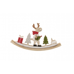 Dit heerlijke stuk is ongeveer 12 cm hoog, waardoor het perfect is om te tonen op planken of schoorstenen als onderdeel van uw feestdecoraties. De sneeuwman houdt een charmante cadeauverpakking vast, versierd met rode accenten en kleine kerstboommotieven, wat zijn seizoensgebonden charme verder versterkt.